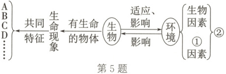 5.(科学思维)小丽同学在学习了“生物与环境”的相关知识后,绘制了如图所示的概念图。请分析回答下列问题: