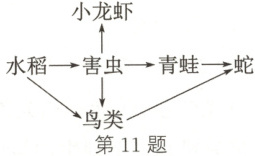 11. (2024·宜宾)如图为“稻虾共作”农田生态系统的部分食物网示意图。据图分析,下列叙述错误的是 (