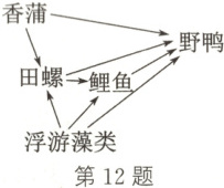 12. (2025·泉州模拟)北京奥林匹克公园的“龙形水系”是亚洲最大的城区人工水系,既美化环境,又富有文化意义。如图为“龙形水系”生态系统部分食物网。