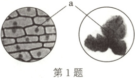 1. (2024·吴江期末)如图是小东在显微镜下观察到的洋葱鳞片叶内表皮细胞和人口腔上皮细胞,其中a是 (