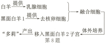 8. (2023·陕西改编)如图是克隆羊“多莉”的诞生过程。下列关于“多莉”的分析,正确的是 (