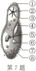 7. (2024·连云港东海段考)如图是草履虫的结构示意图,据图回答问题: