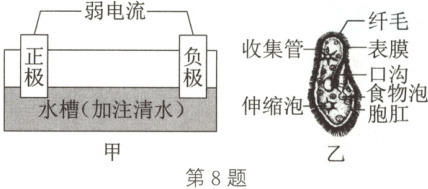(填“正极”或“负极”)一侧。草履虫依靠图乙中纤毛