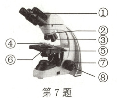 7. (2024·北京西城期中)显微镜是生物学研究中常用的观察仪器,它能帮助我们观察到肉眼无法看到的细微结构,请据图回答下列问题。
