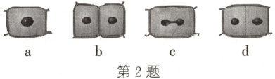 2. 如图是植物细胞分裂过程中不同时期的图像,按发生的先后顺序,正确的是 (