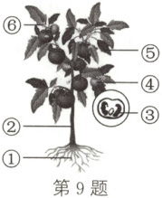 9. 如图所示为番茄的植物体,据图回答下列问题: