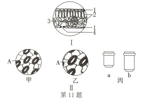 (1) 选取新鲜的叶片,制成临时切片,放置在低倍显微镜下观察(如图Ⅰ所示),[