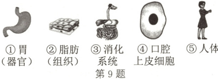 9. 如图分别代表人体的不同结构层次,下列说法中不正确的是(