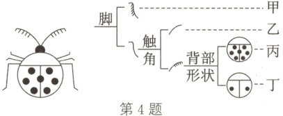 4. 小刚根据如图所示检索表,可查出图中昆虫所属的类别是 (