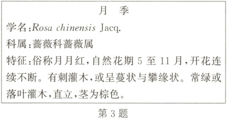 3.(新情境)(2024·吴江期末)月季是常见的观赏植物,下面为某校园内月季的标牌,下列叙述正确的是 (