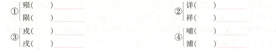 ③$\begin{cases} 戎(róng)戎装 \\ 戌(xū)戌时 \end{cases}$ ④$\begin{cases} 哺(bǔ)哺育 \\ 浦(pǔ)浦帆 \end{cases}$