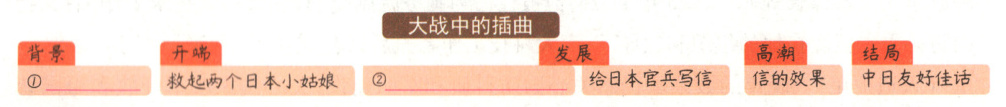(3)《大战中的插曲》“大战”指历史上著名的“百团大战”,“插曲”的意思是“比喻连续进行的事情中插入的特殊片段”,在文中指拯救两个日本小姑娘的故事。