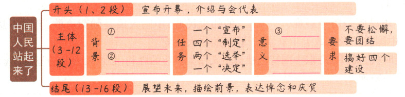 ├─ 结尾(13 - 16段):展望未来,描绘前景,表达悼念和庆贺