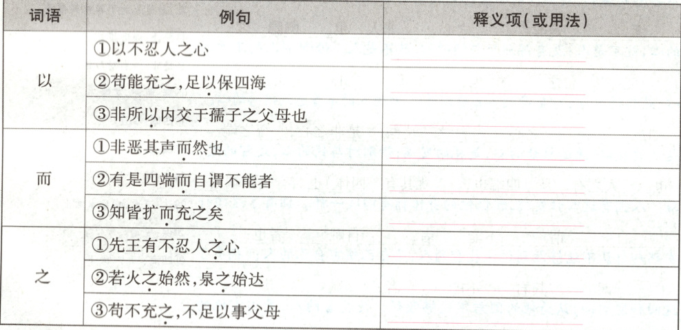 3. 介词,用 连词,用来 与“所”连用,表原因 连词,表顺承 连词,表转折 连词,表顺承 助词,的 主谓之间,取消句子独立性 代词,代指四端