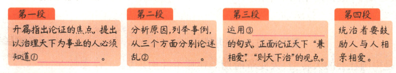 (2)墨子认为这些乱象产生的原因是只知自爱而不爱人。