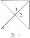 (4) 正方形的四个角都是直角,所以$\angle1 = 90^{\circ}$;正方形的对角线互相垂直,所以$\angle2 = 90^{\circ}$;对角线平分内角,正方形内角为$90^{\circ}$,所以$\angle3=90^{\circ}÷2 = 45^{\circ}$。