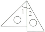 2. 右图是一副三角板拼成的图形$, ∠1 + ∠2 =$ (
