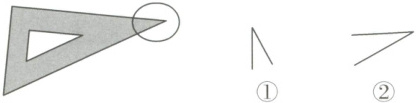 4. 平平和聪聪描同一块三角板(如图)中的最小角,平平描出的角是①,聪聪描出的角是②,那么①和②的大小关系是(