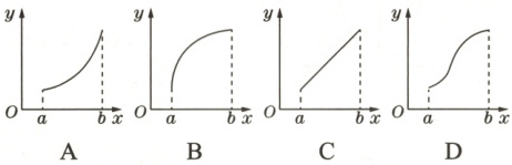 2.A 解析:依题意,$y = f'(x)$在$[a,b]$上单调递增,则在函数$f(x)$的图象上,各点的切线的斜率随着$x$的增大