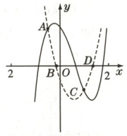 1. [淮南一中等五校高三联考]定义在$[-2, 2]$上的函数$f(x)$与其导函数$f'(x)$的图象如图所示,$O$为坐标原点,$A$,$B$,$C$,$D$四点的横坐标依次为$-\frac{1}{2}$,$-\frac{1}{6}$,$1$,$\frac{4}{3}$,则函数$y = \frac{f(x)}{e^{x}}$的单调递减区间是(