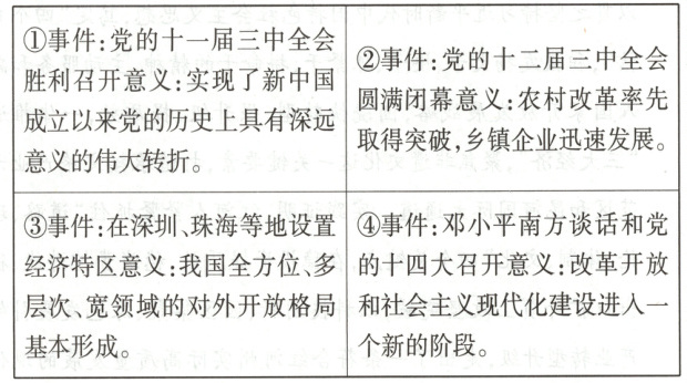 )①改革开放深刻改变了中国人民和中华民族的发展方向 ②农村包围城市是党领导人民不断取得胜利的重要法宝 ③中国在改革开放中探索出适合自身发展的现代化道路 ④党有能力领导人民迎来中华民族伟大复兴的光明前景