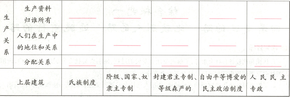 情境 不同社会形态的生产力、生产关系和上层建筑特点