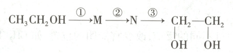 3.A 乙醇经3步转化为乙二醇,乙醇消去反应生成乙烯,乙烯和溴的四氯化碳溶液加成生成1,2 - 二溴乙烷,再发生水解生成乙二醇。①是乙醇消去反应生成乙烯,A正确;③的反应是1,2 - 二溴乙烷的水解,反应条件是$\mathrm{NaOH}$水溶液加热,B错误;M是乙烯,N是1,2 - 二溴乙烷,N比M的相对分子质量大160,C错误;M物质是乙烯,N是1,2 - 二溴乙烷,D错误。