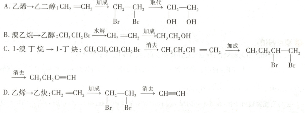 2. (2024·湖南岳阳高二期末) 在有机合成中,常会将官能团消除或增加,下列相关过程中反应类型及相关产物不合理的是 (