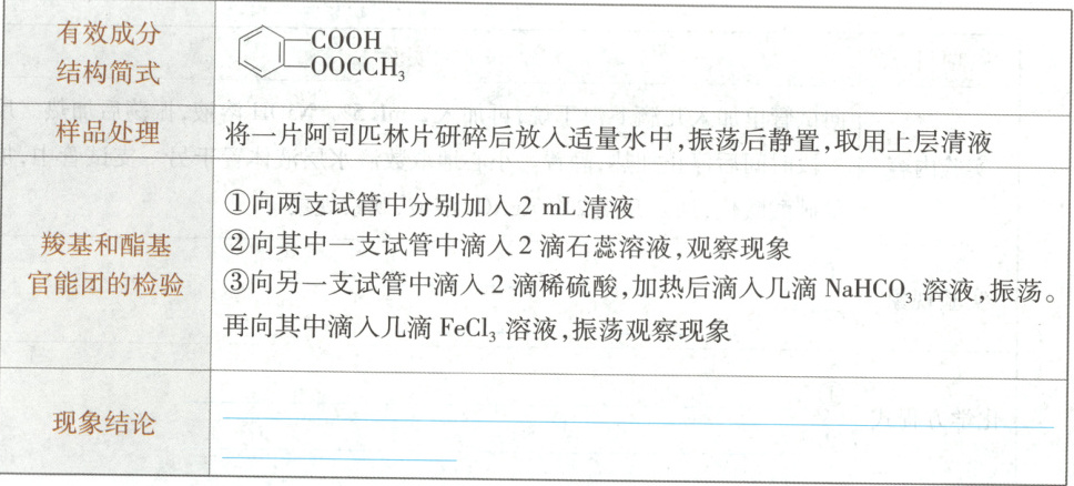 3. 阿司匹林片有效成分中羧基和酯基官能团的检验