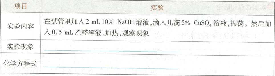 $\mathrm{CH}_3\mathrm{CHO}+2\mathrm{Cu}(\mathrm{OH})_2+\mathrm{NaOH}\xrightarrow{\triangle}\mathrm{CH}_3\mathrm{COONa}+\mathrm{Cu}_2\mathrm{O}\downarrow+3\mathrm{H}_2\mathrm{O}$