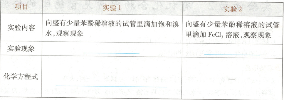 试剂:1-己烯、1-溴丁烷、无水乙醇、苯酚稀溶液、乙醛溶液、苯、1-丙醇、2-氯丙烷、丙醛、四氯化碳、阿司匹林片、饱和溴水、酸性 $KMnO_4$ 溶液、5% $NaOH$ 溶液、10% $NaOH$ 溶液、稀硝酸、稀硫酸、2% $AgNO_3$ 溶液、5% $CuSO_4$ 溶液、$FeCl_3$ 溶液、$Na_2CO_3$ 溶液、石蕊溶液。