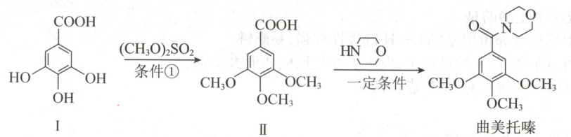 3.A 化合物I含有的官能团有羧基、酚羟基,化合物II含有的官能团有羧基、醚键,官能团种类不同,化合物I和化合物II不互为同系物,A项错误;根据题中流程可知,化合物I中的酚羟基与(CH₃O)₂SO₂反应生成酯,故苯酚和(CH₃O)₂SO₂在条件①下反应得到苯甲醚,B项正确;化合物II中含有羧基,可以与NaHCO₃溶液反应,C项正确;由曲美托嗪的结构简式可知,曲美托嗪中含有的官能团为酰胺基、醚键,D项正确。