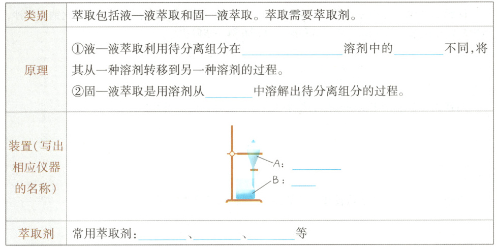 2.两种互不容的 溶解度 固体物质 分液漏斗 烧杯 乙醚 乙酸乙酯 二氯甲烷