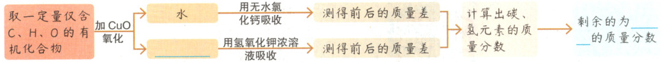 2. 定量分析的原理:将一定量的有机化合物燃烧,转化为简单的无机物,并通过测定无机物的质量,从而推算出各组成元素的质量分数,然后计算出该有机化合物分子内元素原子的最简整数比,确定其实验式∘