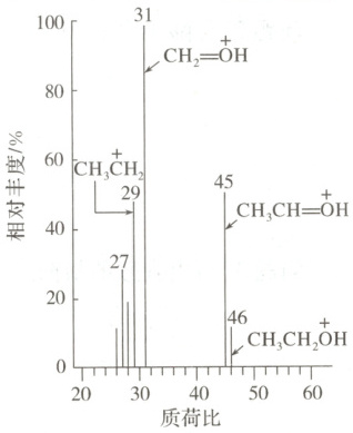 (2)质荷比 各类离子的相对丰度 46 质荷比最大