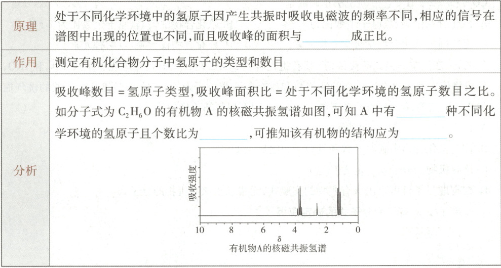 二、氢原子数 3 3:2:1 $\mathrm{CH_3CH_2OH}$