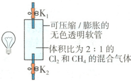 3.(2024·河北沧州高二阶段练习)某化学兴趣小组在阴暗的地方用如图所示装置探究$CH_{4}$与$Cl_{2}$的反应,灯泡接通电源后,开始实验。下列说法错误的是 (