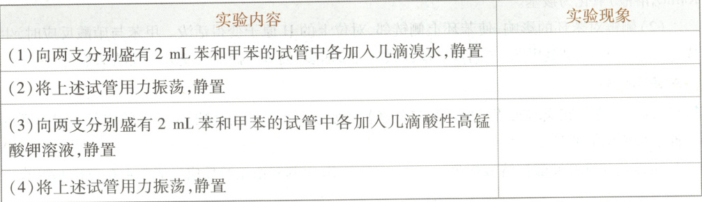 问题1.结合苯及其同系物的性质,根据实验内容,回答下列实验现象。