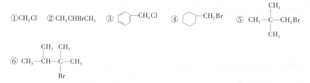 1.C 卤代烃中与卤素原子直接相连的第二个碳原子上含氢原子,能发生消去反应;卤代烃在氢氧化钠溶液中水解能得到醇。①③⑤不能发生消去反应,能水解得到醇;②④⑥既能发生消去反应生成烯烃,又能发生水解反应生成醇。