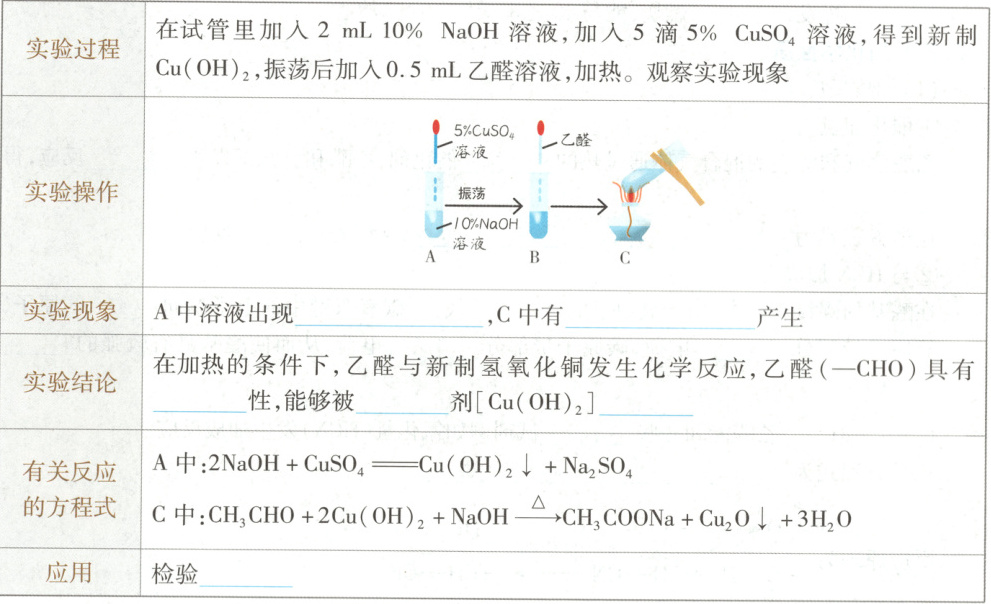 ②乙醛与新制的$Cu(OH)_2$悬浊液反应【实验 3 - 8】