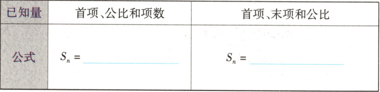 $\begin{cases}na_1, & q = 1 \\frac{a_1(1 - q^n)}{1 - q}, & q \neq 1\end{cases}\quad\begin{cases}na_1, & q = 1 \\frac{a_1 - a_nq}{1 - q}, & q \neq 1\end{cases}$