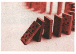 第一块骨牌倒下且每一块骨牌都能推倒下一块骨牌
