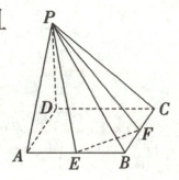 平面$PEF$的一个法向量为$\boldsymbol{n} = (2,2,3),\overrightarrow{AE} = (0,\frac{1}{2},0)$