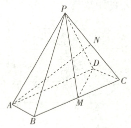 从而直线$AN$与平面$PDM$所成角的正弦值为$\sin\theta=\frac{|\overrightarrow{AN}·\boldsymbol{n}|}{|\overrightarrow{AN}|·|\boldsymbol{n}|}=\frac{\frac{5}{2}}{\sqrt{\frac{27}{4}+\frac{25}{4}+2}}=\frac{\sqrt{15}}{6}$。