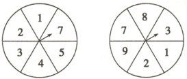 1. 如图所示,在两个圆盘中,指针落在本圆盘每个数所在区域的机会均等,那么两个指针同时落在奇数所在区域的概率是(