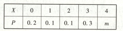 例6:由分布列的性质知$0.2 + 0.1 + 0.1 + 0.3 + m = 1$,解得$m = 0.3$.