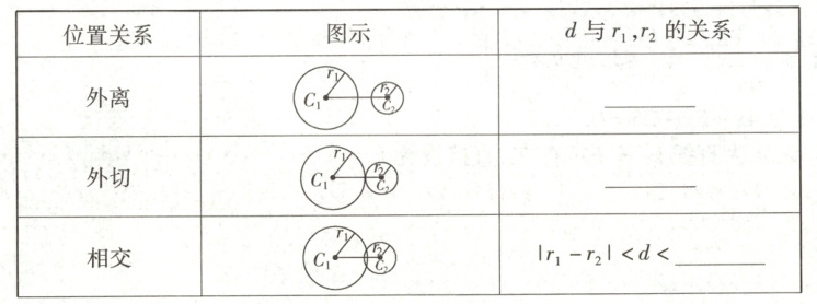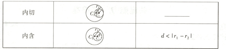 (1) 几何法:若两圆的半径分别为$r_1$,$r_2$,两圆的圆心距为$d$,则两圆的位置关系的判断方法如下: