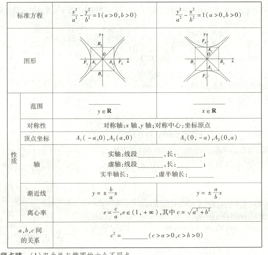 名师点睛 (1) 双曲线与椭圆的六个不同点: