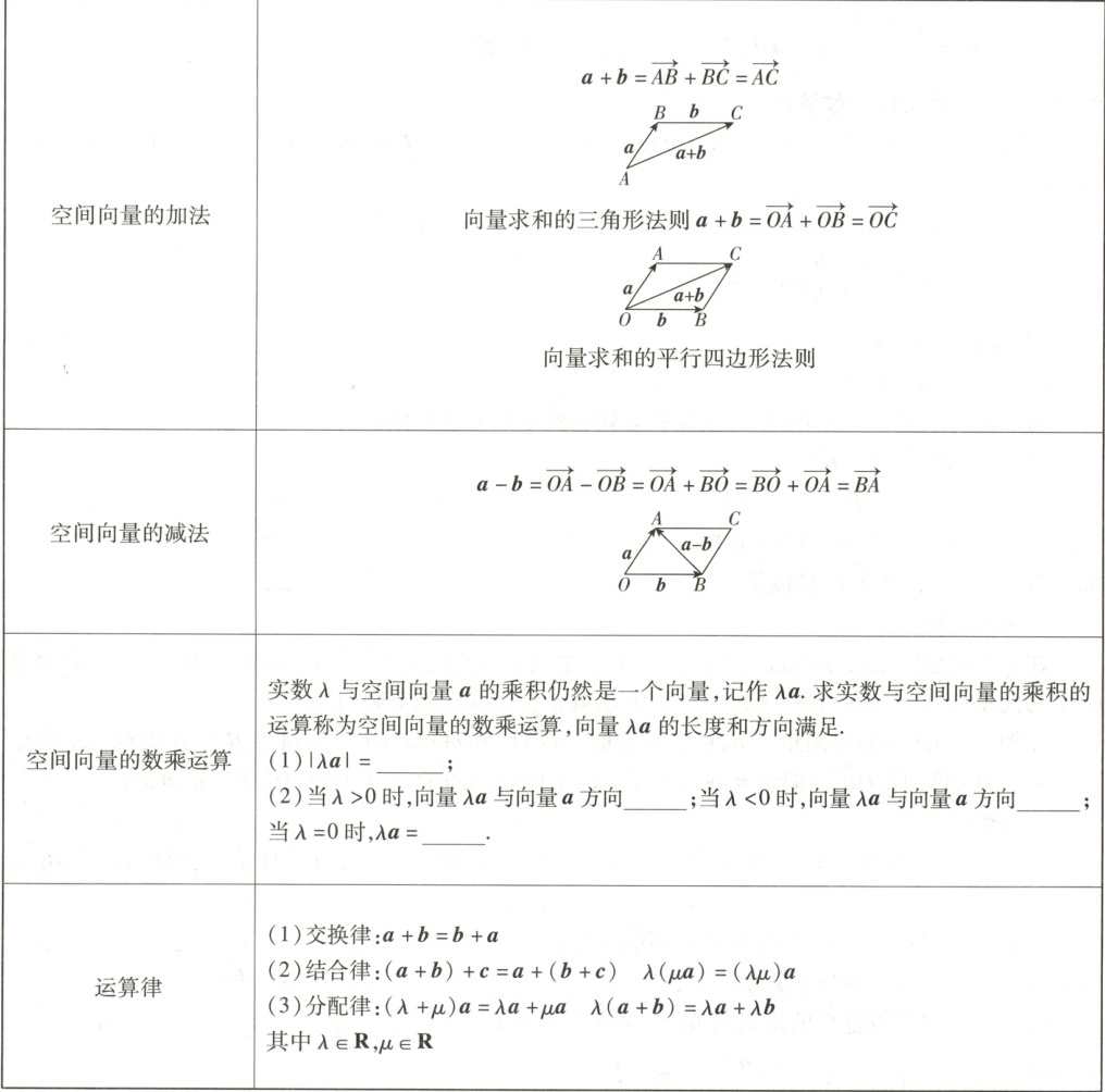 实数$\lambda$与空间向量$a$的乘积仍然是一个向量,记作$\lambda a$.求实数与空间向量的乘积的运算称为空间向量的数乘运算,向量$\lambda a$的长度和方向满足.