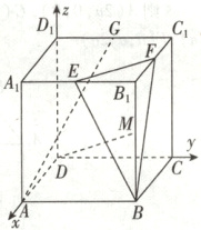 则$A(1,0,0),B(1,1,0),E(1,\frac{1}{2},1),F(\frac{1}{2},1,1),G(0,\frac{1}{2},1)$,